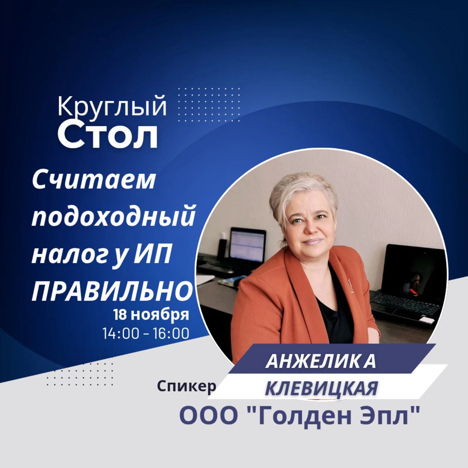 с 14.00 до 16.00 и будет посвящен теме «Считаем подоходный налог у индивидуальных предпринимателей правильно». Форма проведения онлайн.