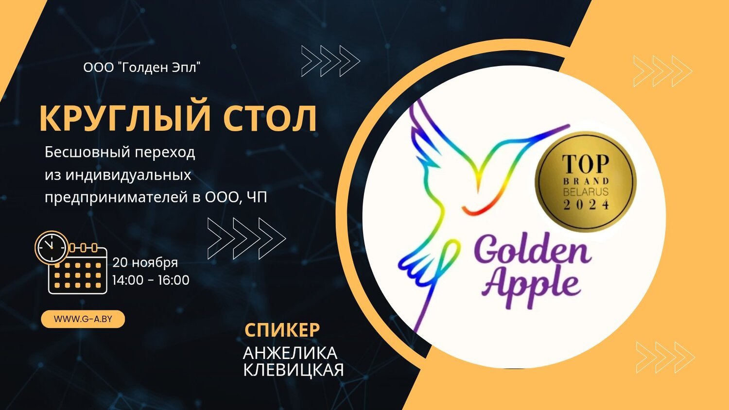 20 ноября в Центре поддержки предпринимательства ООО "Голден эпл" состоялся круглый стол на тему «Бесшовный переход из ИП в ООО, ЧП».